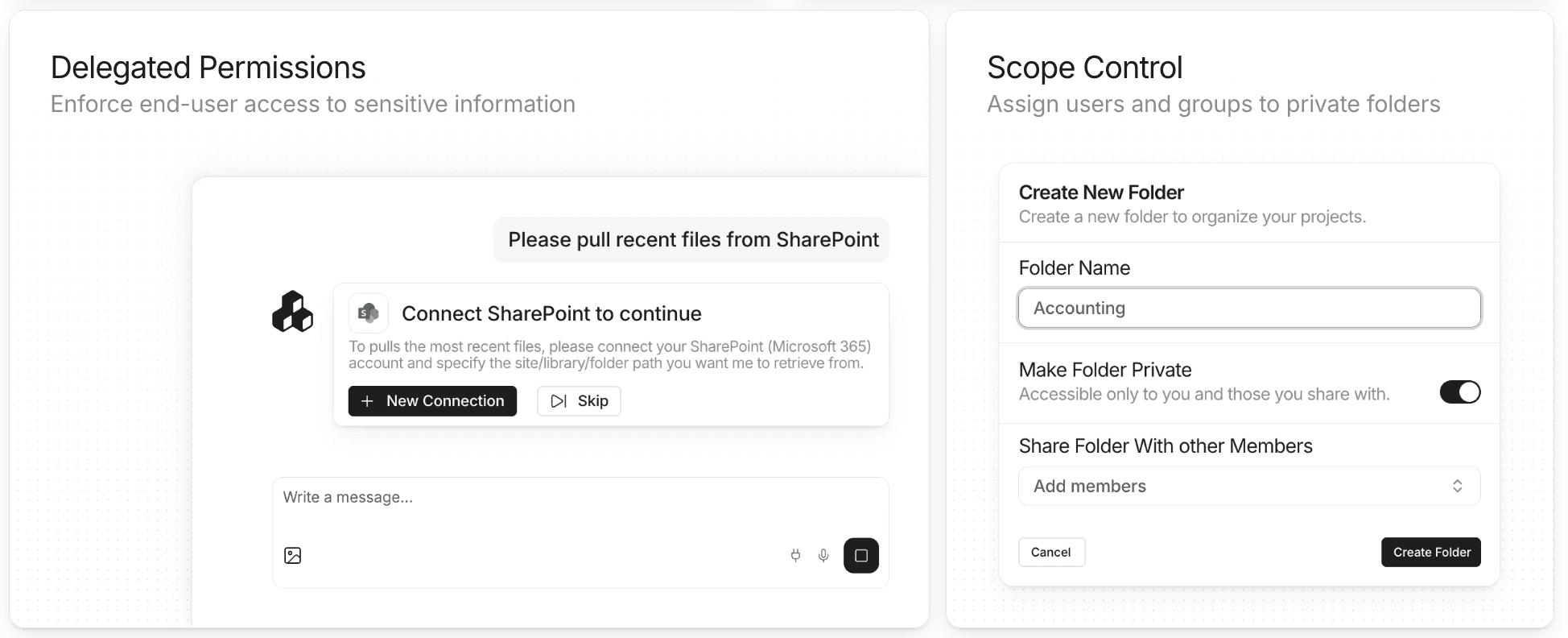AI models | OpenAI-first; Claude available but secondary | LLM-agnostic: OpenAI, Anthropic, Google, Meta, Mistral, open-source, self-hosted |