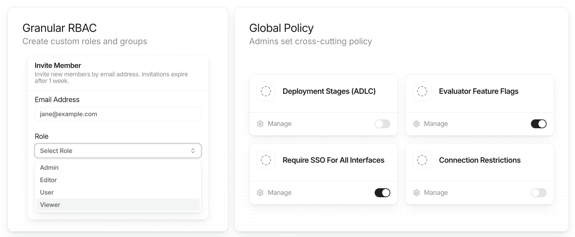 StackAI was built governance-first. The platform includes eight layers of controls, RBAC, SSO, PII redaction, audit logs, data residency options, and on-premise deployment in the customer's own AWS or Azure environment.