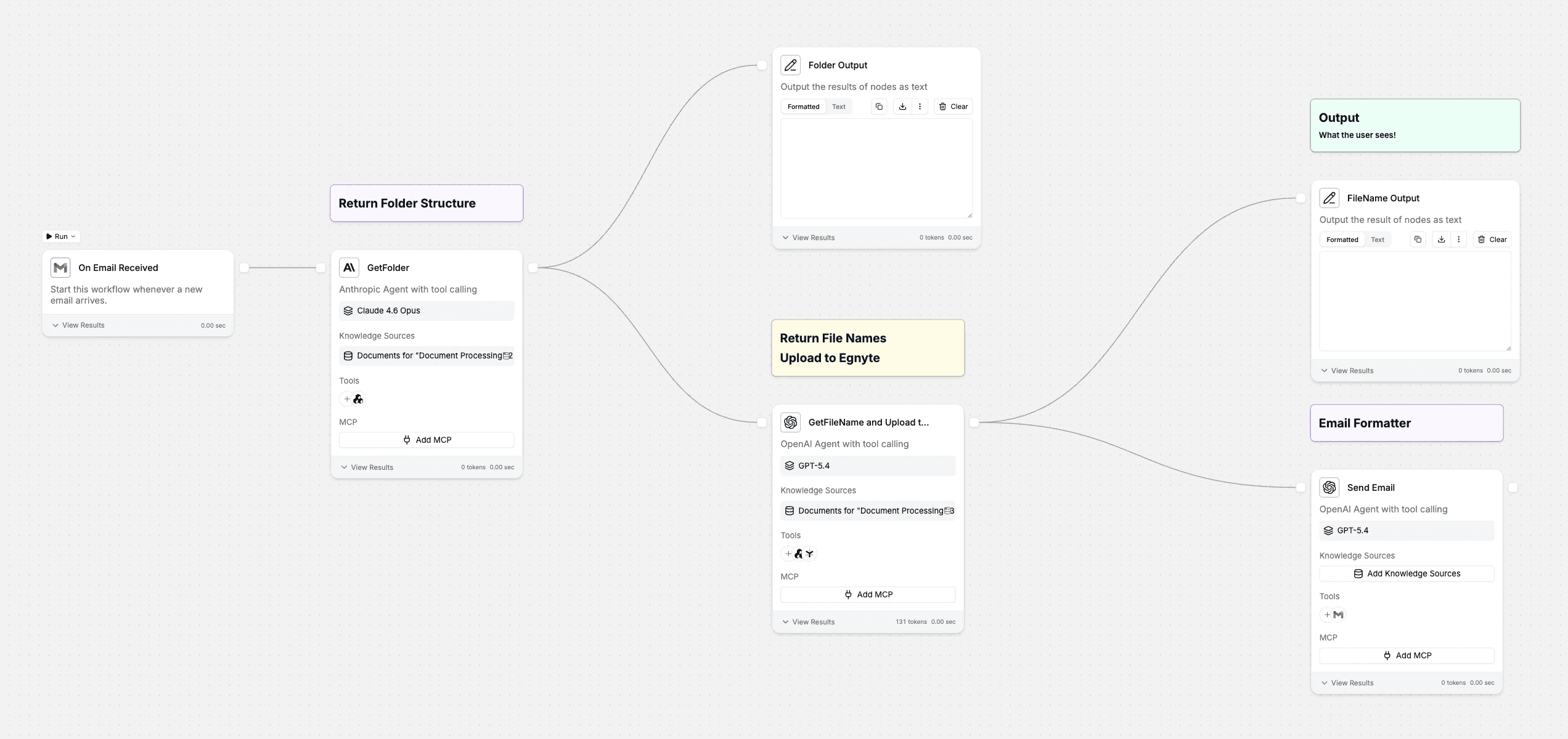 Build a workflow that automatically ingests new documents, classifies them using an LLM, and routes them to the correct Egnyte folder based on document type, department, project code, or any custom taxonomy.