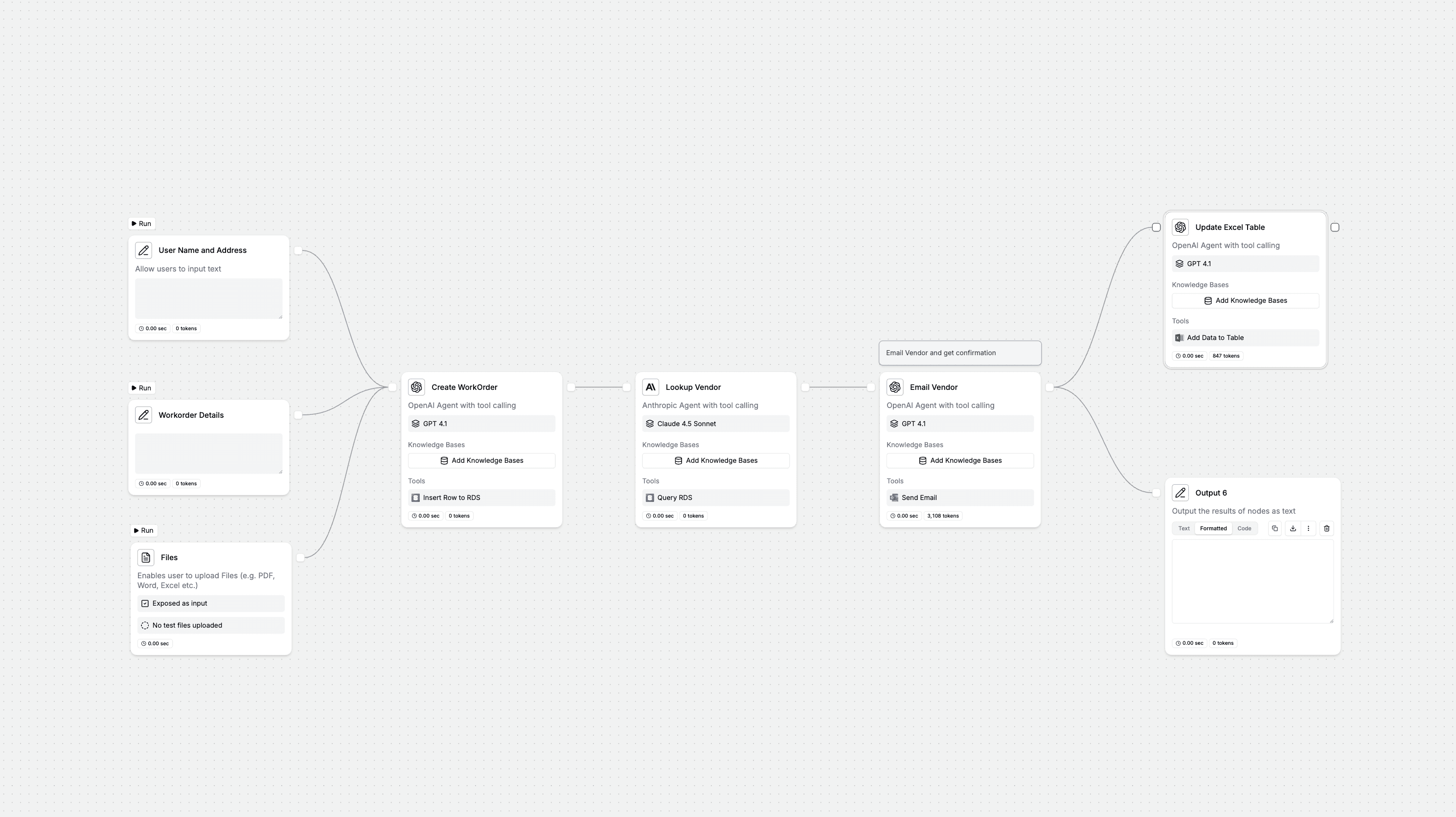 An end-to-end work order automation agent that creates work orders from user requests, matches them with top-rated vendors, sends professional email communications, and logs all activities for human follow-up.