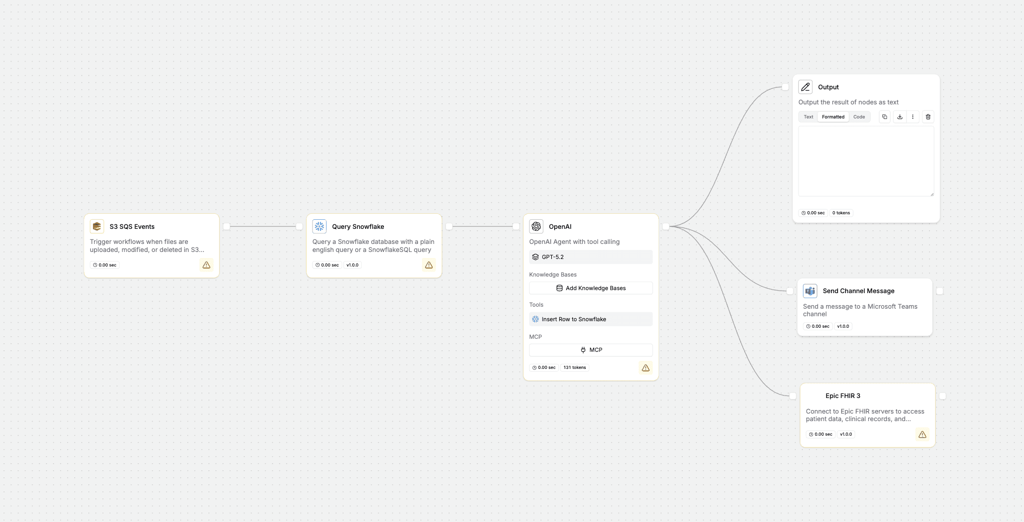 An AI-powered RCM analyst that automatically triggers when new claims or remittance files arrive in S3, queries historical data from Snowflake, assesses denial risk or root causes, and routes findings to Microsoft Teams and Epic FHIR workqueues.