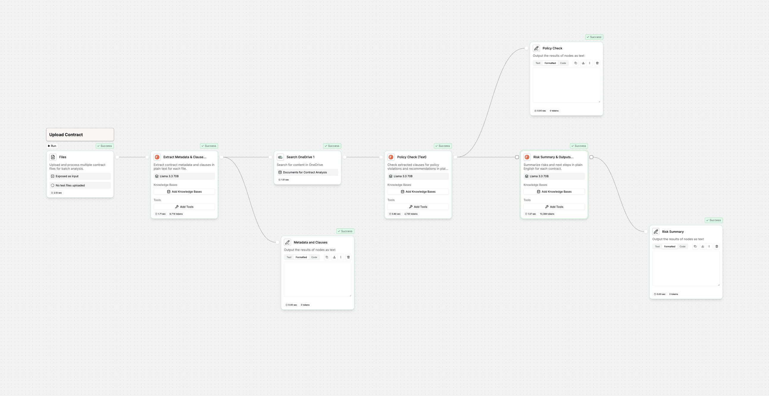 A Cerebras-powered contract analysis workflow that ingests documents, extracts critical terms and clauses, cross-references them against organizational policies, and produces comprehensive risk assessments.